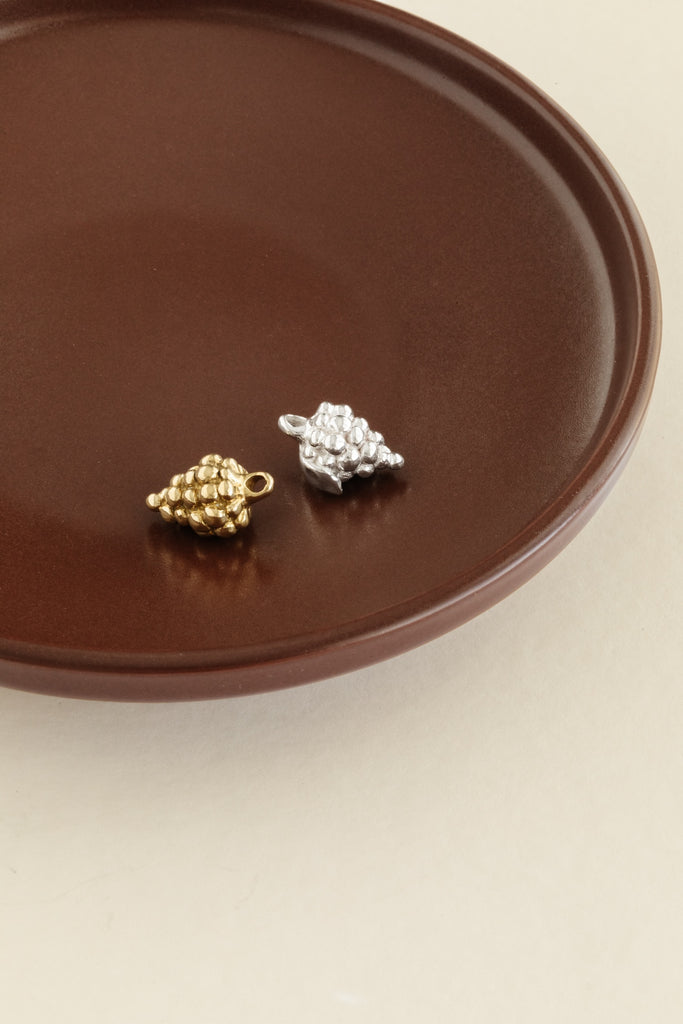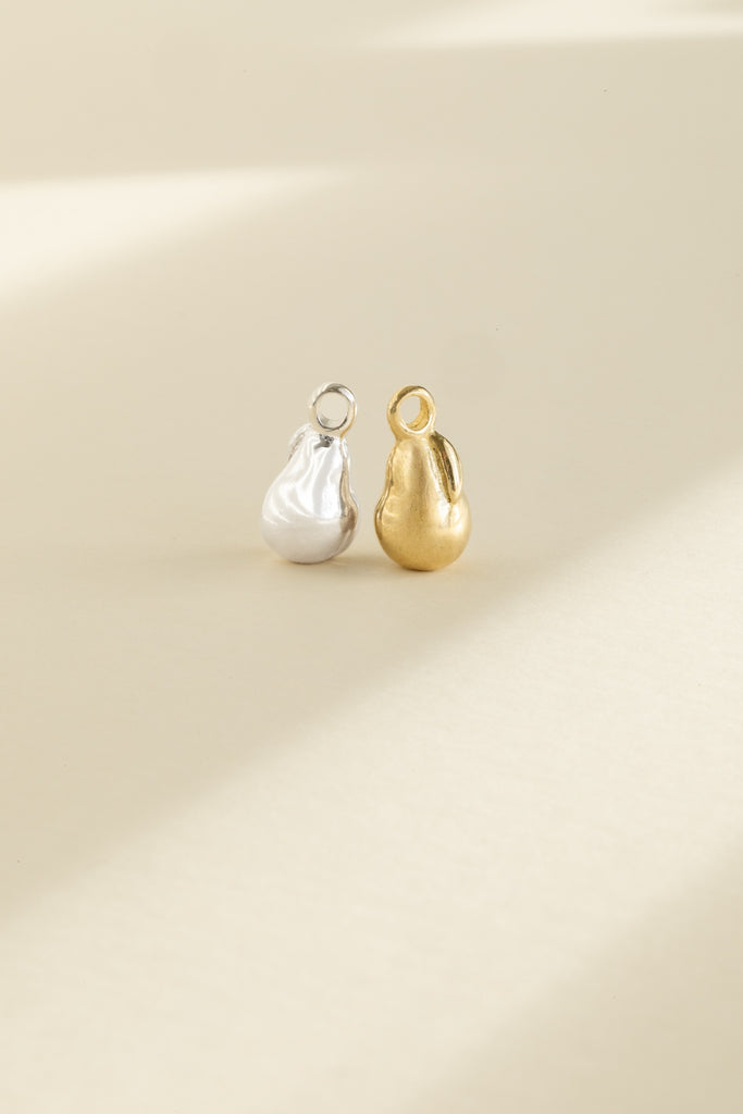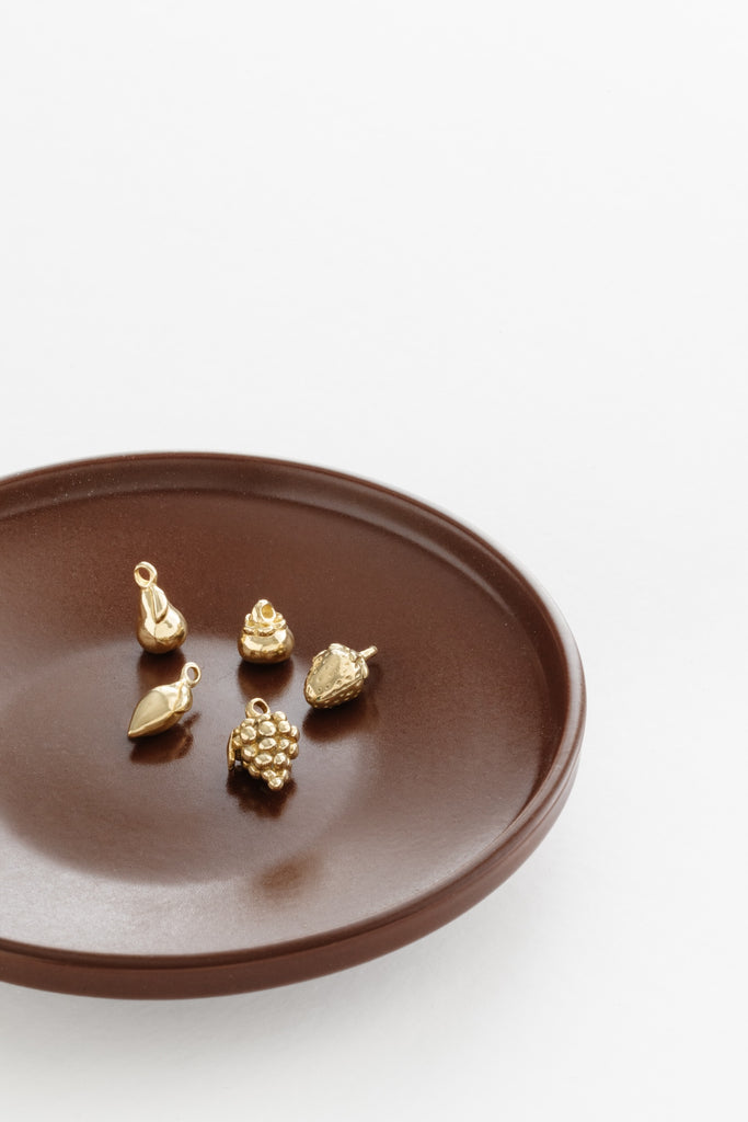 The Fruit Charm Collection is made of either yellow bronze, ancient bronze, or sterling silver. Each piece is made to order.