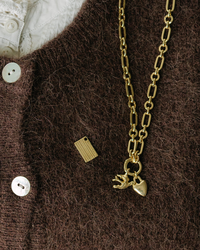 This delicate chain is gold-filled and also comes with a gold-filled charm holder. Both are durable and are tarnish-resistant.